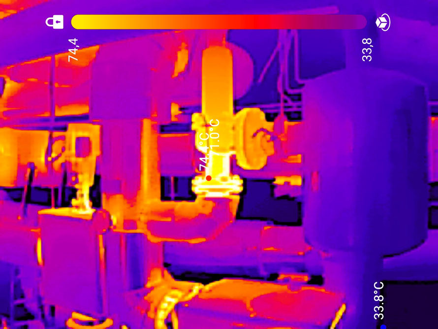 Übergabestation Fernwärme Vorlauf T. 74,4°C  W.