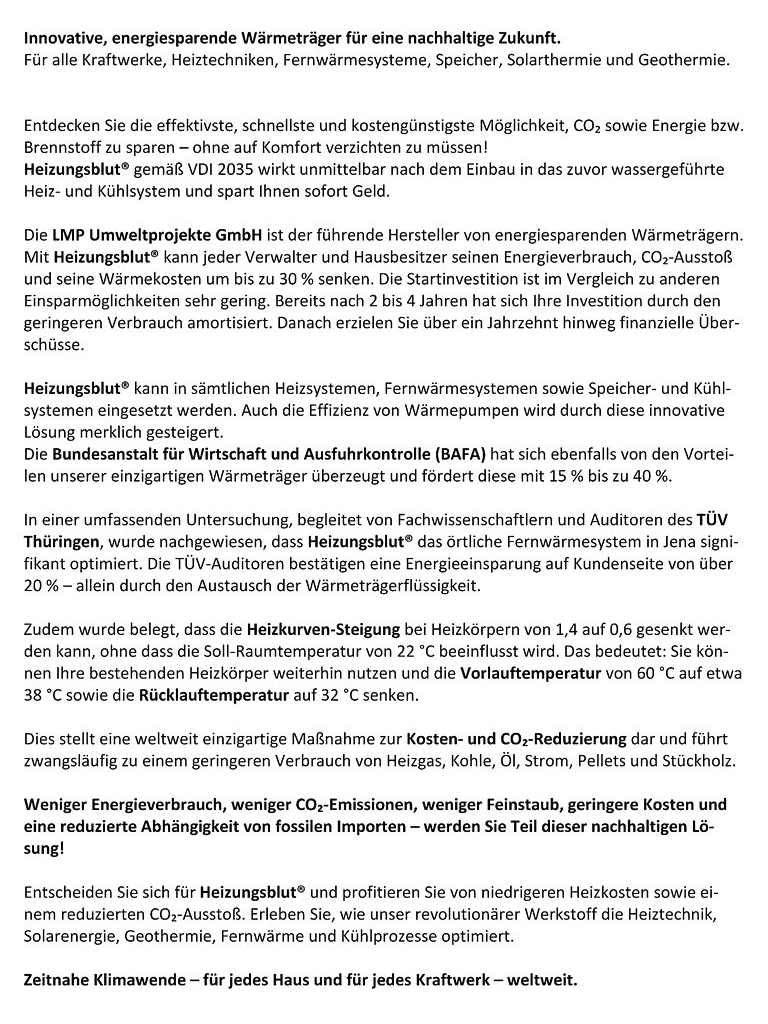 Durch Heizungsblut R1 werden die Übertragungsprozesse optimiert. Ein Nachfüllen der Wärmeträgerflüssigkeit entfällt, nach dem Heizungsblut eingefüllt wurde.